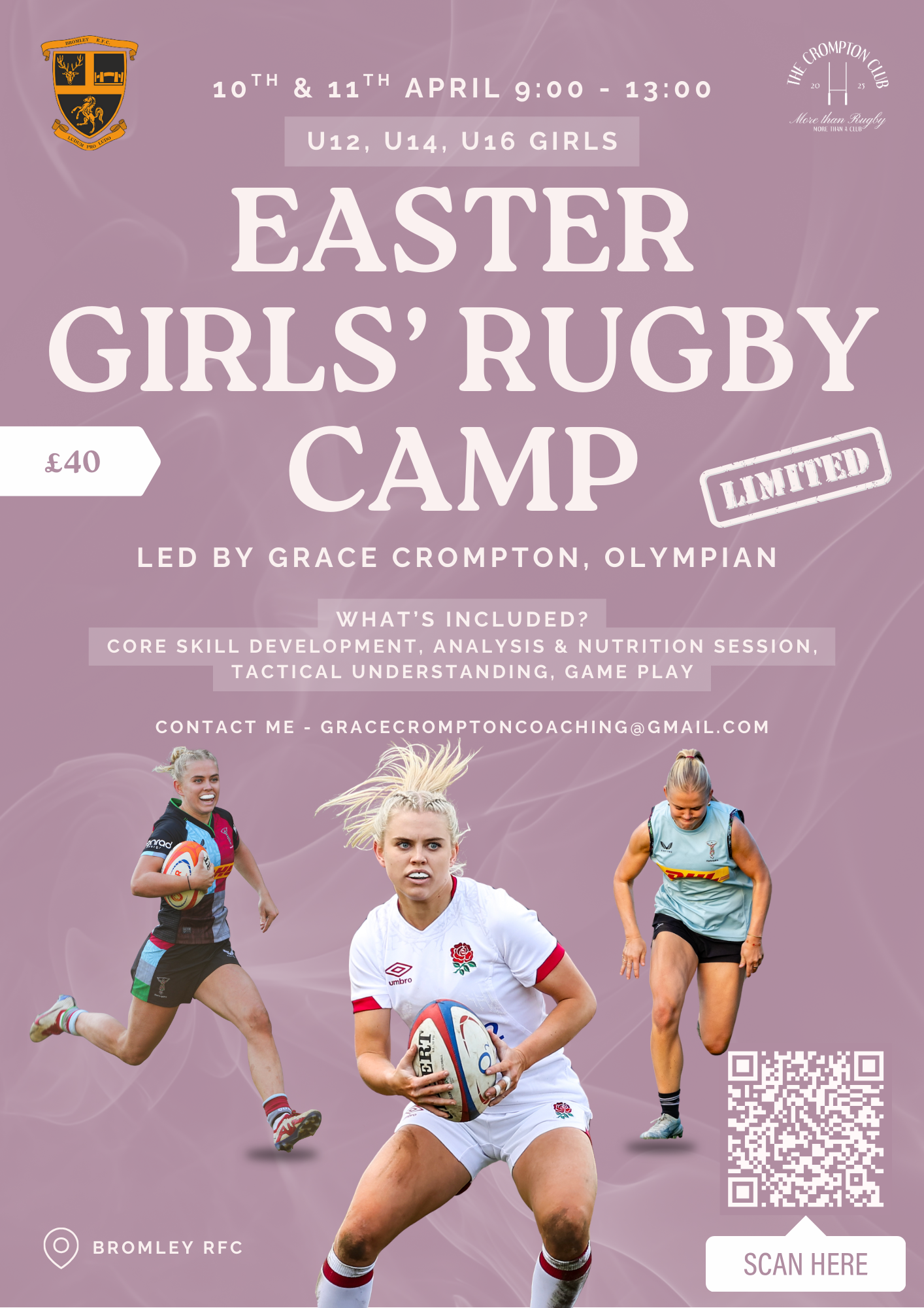 Join us at Bromley RFC for a fun, friendly and confidence-building Girls Rugby Camp, designed to help players develop their skills, make new friends and fall even more in love with the game!